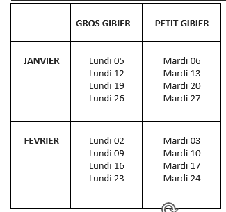 CALENDRIER DE CHASSE EN FORET DOMANIALE DE FOUGERES