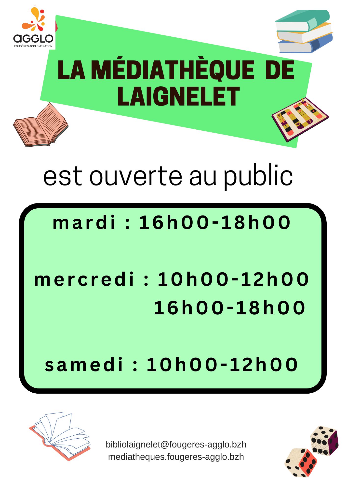 LA MEDIATHEQUE DE LAIGNELET RESTE OUVERTE PENDANT LES VACANCES D’AVRIL AUX HORAIRES HABITUELS